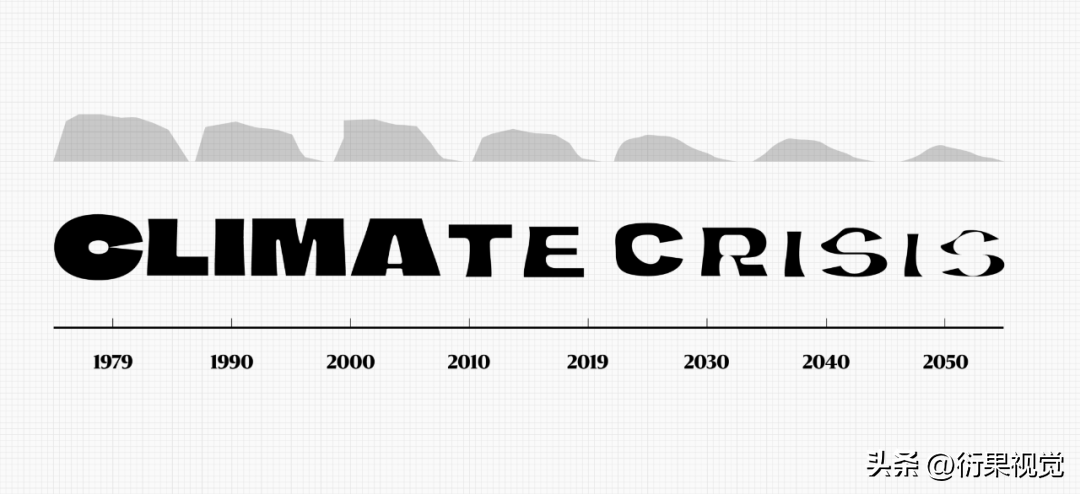 它能够根据时间来调整粗细,以字体“饱满”程度的变化更为直观地展现气候变化对冰川面积的影响。