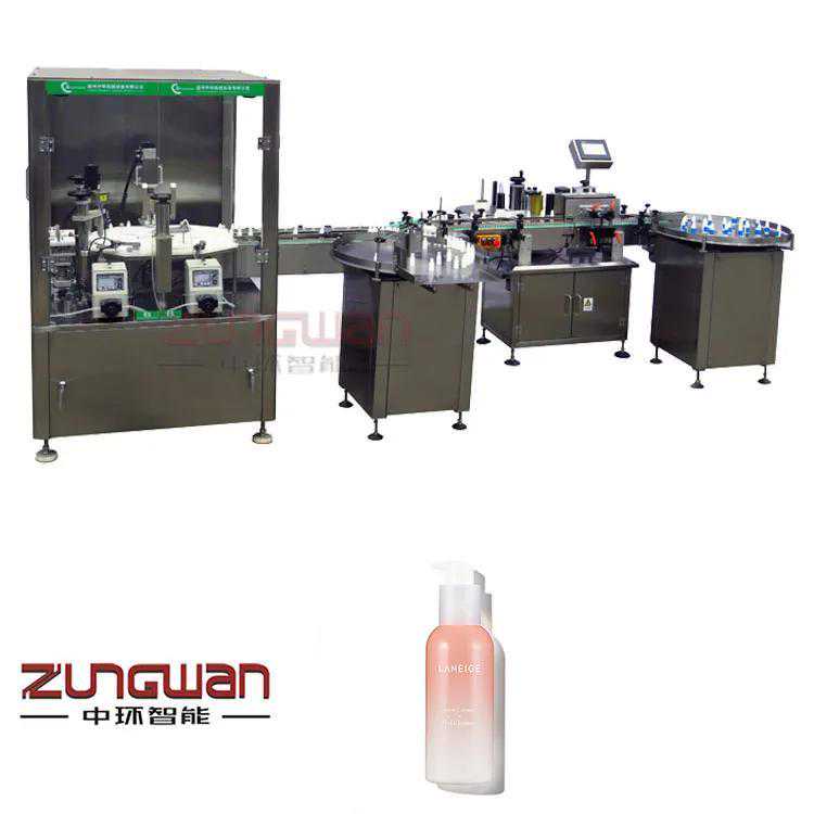 化妆品彩妆灌装旋盖贴标机流水线