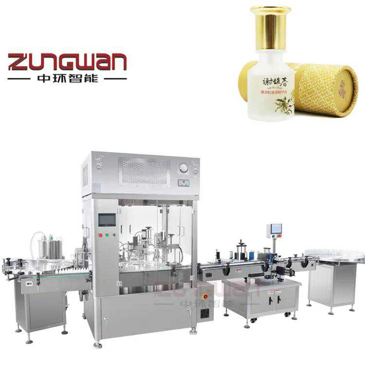 工作流程:整线全自动完成(上瓶、理瓶、气洗可选)定量灌装、上塞、理塞、加塞、上盖、理盖、加盖、旋盖、出瓶等工序,采用高精度陶瓷泵或蠕动泵灌装,整套机械手操作,生产速度较快,能节约人力成本。