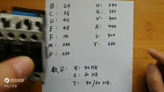 常见的交流接触器一般有最多的二百二十伏、三百八十伏,还有三十六伏可能见的比较多。这个数字是什么意思?后边的还有一个m5,有的像三万八二伏接触器线圈的这里是q,这个五数字是代表频率,也就是五代表是五十赫兹,如果是六代表是六十赫兹,国家公平店是五十赫兹。