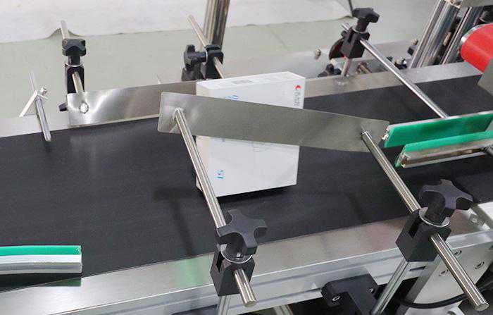3、在贴标轮与产品同步运动的情况下,将标签贴在产品上。当输送带到达特定位置时,标签带的驱动轮会加速到与输送带相匹配的速度,贴上标签后减速停止。