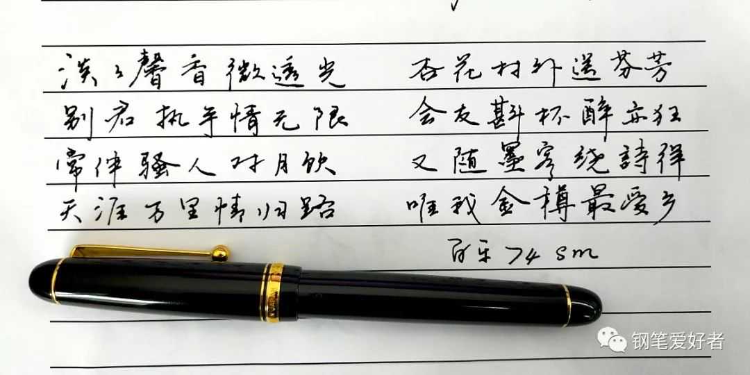 写到这里,其实74sm和长刀研nmf已经没必要比较了,铱粒,就像国产小胖子遇见了欧洲大胖;软弹,sm比不上nmf;顺滑也不在同一个起跑线上,经过一天的适应,发现74sm在笔画粗细上比长刀研nmf相对容易些,这也算是它的一个优点吧(安慰下自己)!