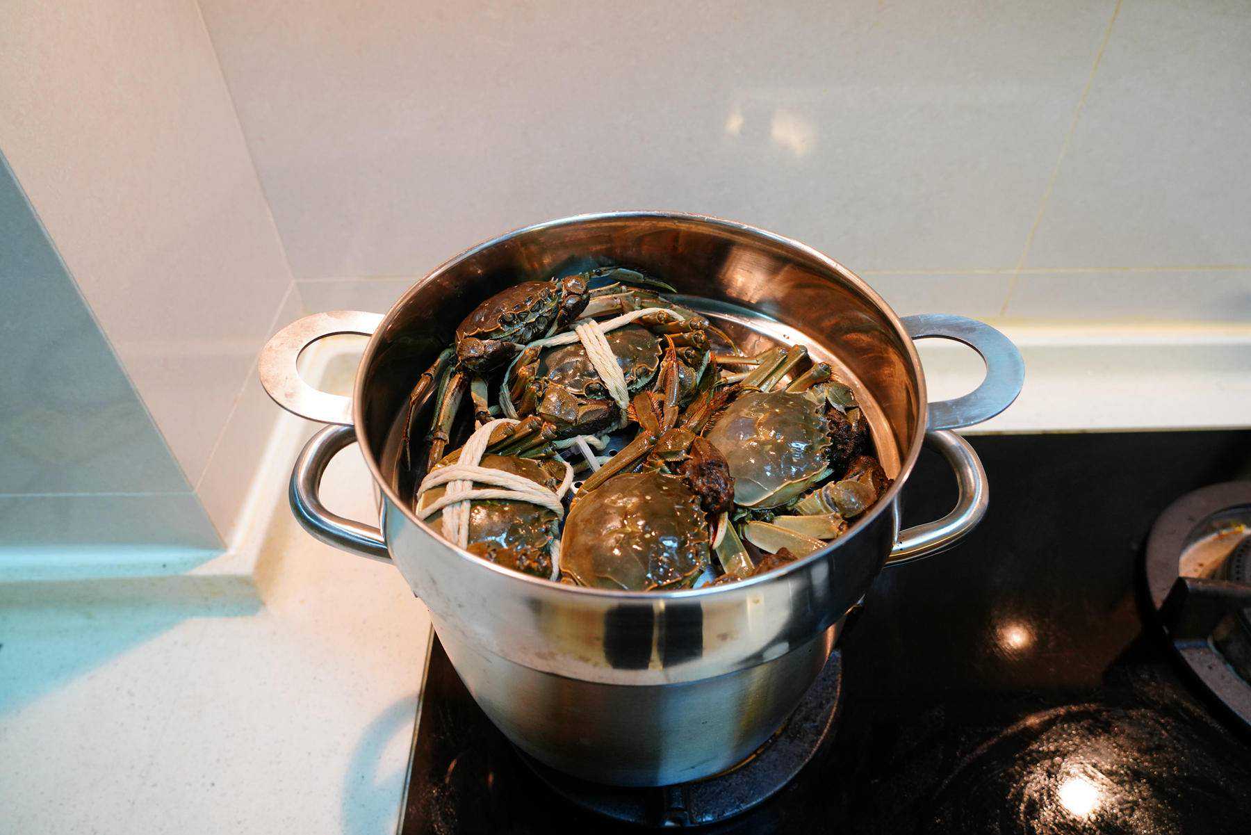▲家里传统蒸锅只能蒸四只大闸蟹,但蒸烤箱就能8只全部放入。