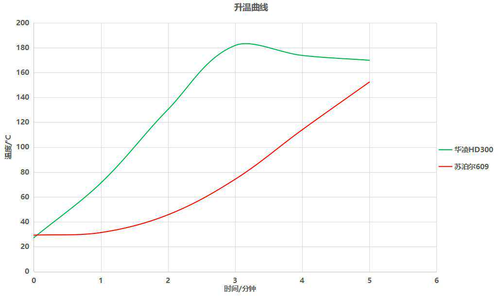 两款蒸烤一体机从最初23℃升到180℃,华凌HD300只用了短短3分钟。随后温度保持着180℃附近,温控能力表现出色。