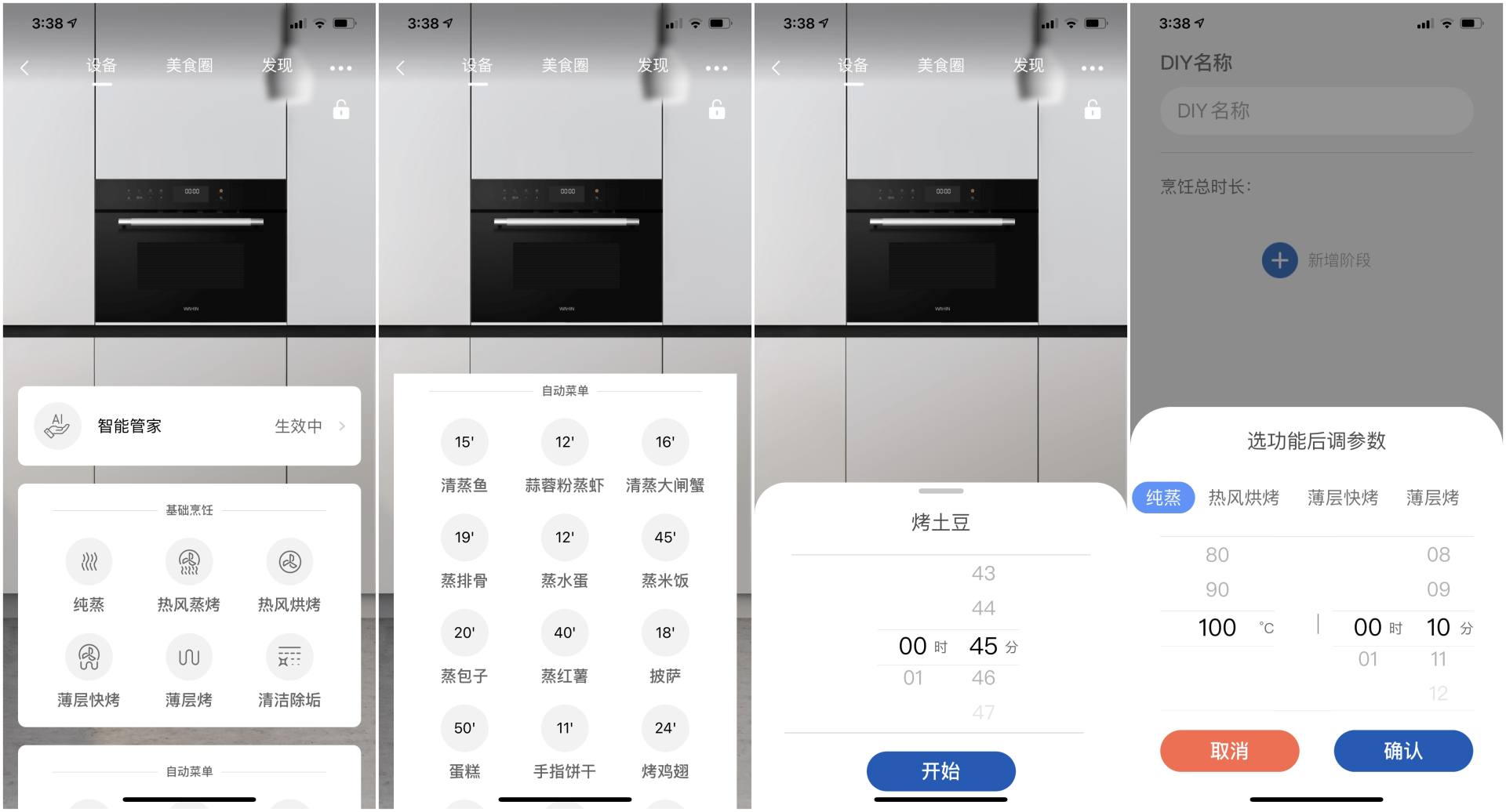 ▲接入美的美居后,操作更加直观和方便。能更快捷和直观的选择想要的程序。甚至还能DIY个性烹饪时间,随心掌握。