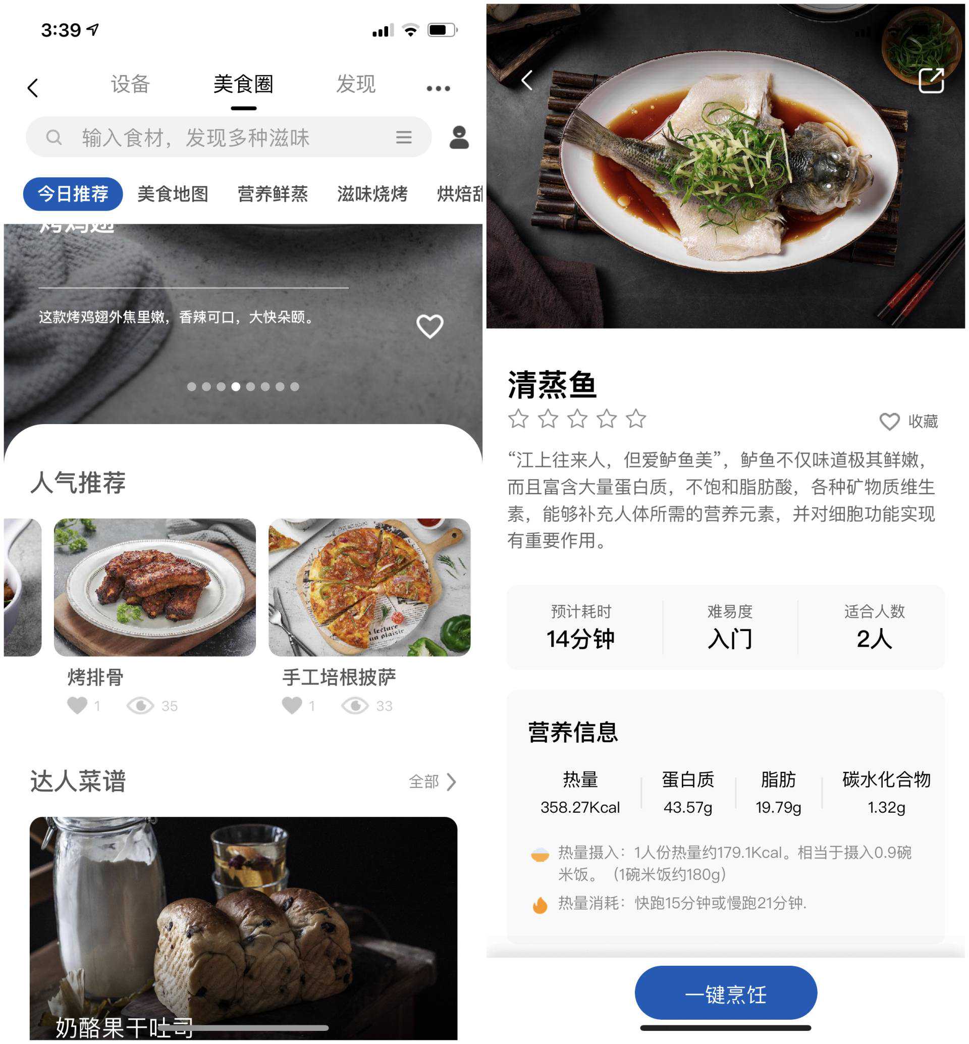 ▲不光如此,接入APP意味着有无数个自动菜谱等待发掘。比如选择了清蒸鱼,不光有菜谱教你如何备菜,还有一键烹饪按钮。从此无需考虑设定多少温度、持续多少时间。只需一键就能搞定。
