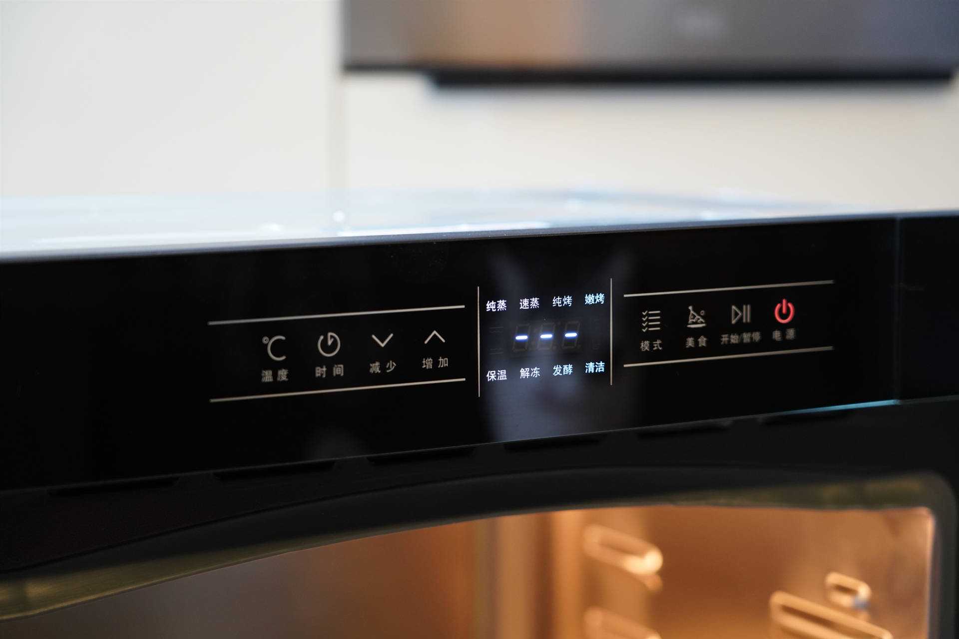 ▲苏泊尔609蒸烤箱没有智能APP功能,所以它把功能划分的比较细。比如保温、解冻、发酵和清洁这些程序全部集成到了面板上。操作起来也比较顺手。