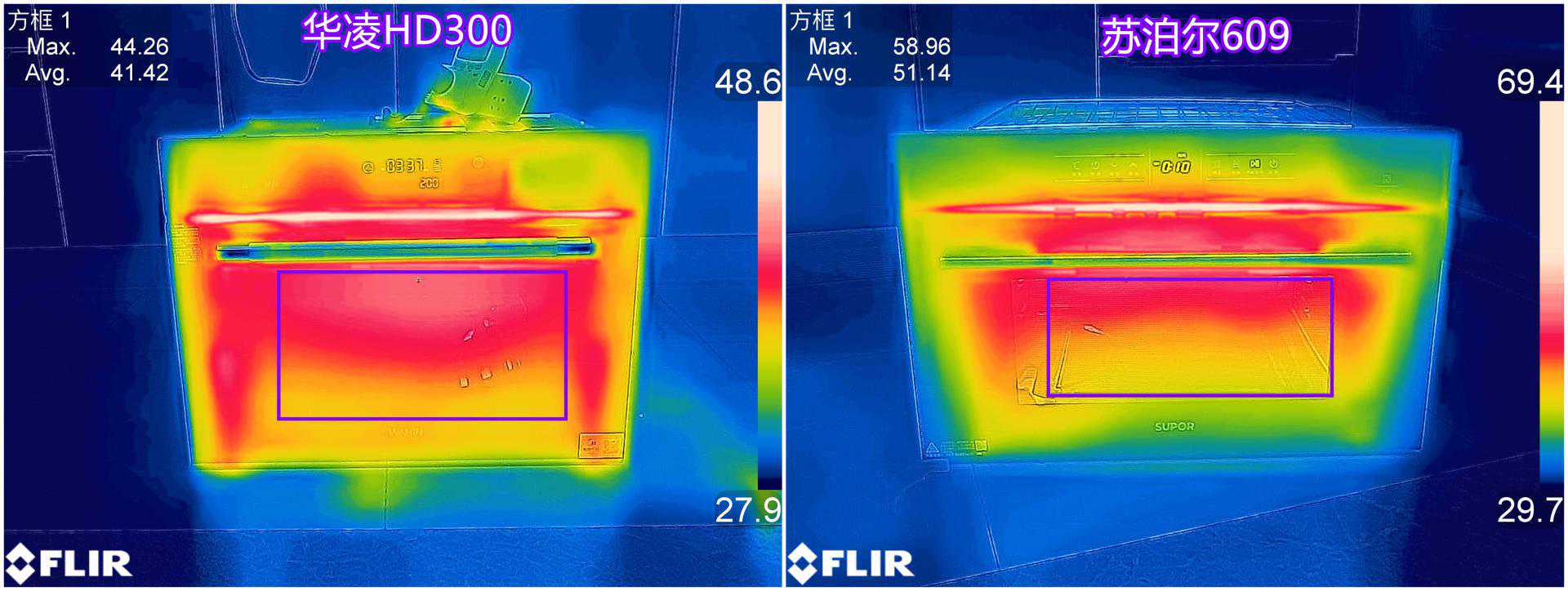 苏泊尔609正面玻璃最高温度58.96℃、平均温度51.14℃。