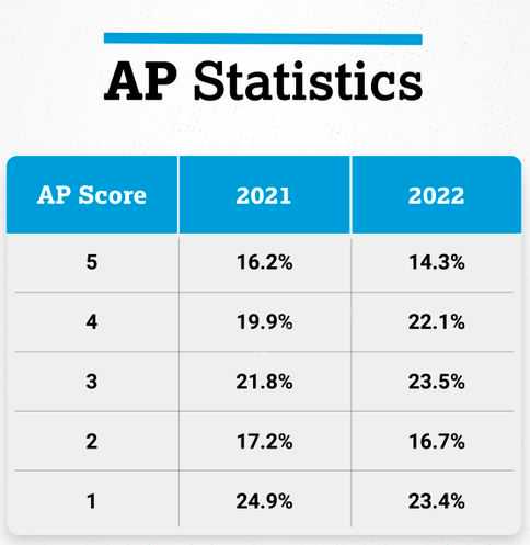 2022年AP统计的5分率比去年略有下降,是14.3%。