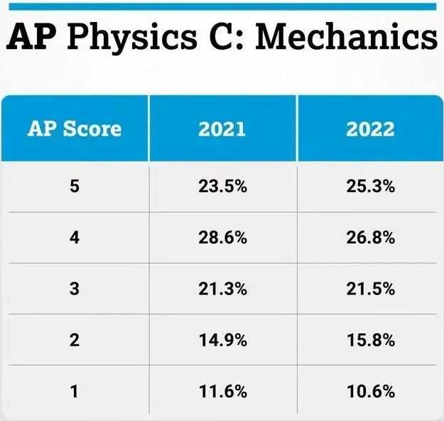 今年AP物理C力学5分率有所提高,上升至25.3%;4分率下降至26.8%。