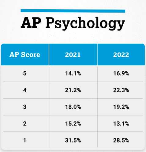 AP心理学的5分率、4分率、3分率较2021年都有小幅度增长,5分率达到了16.9%。
