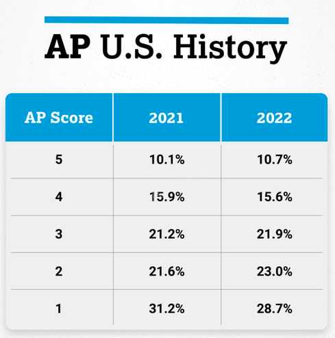 2022年AP美国历史的5分率是10.7%,和往年比较变化不大。