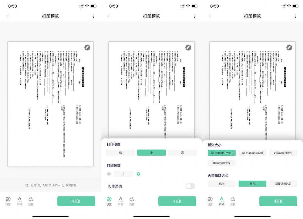 在打印我们手机上的内容时,通过APP可以非常精准的进行各种设置,而且打印的内容也涵盖了PDF、照片、Word、Excel等。像家长朋友在打印老师下发的资料时,就可以很方便的设置。
