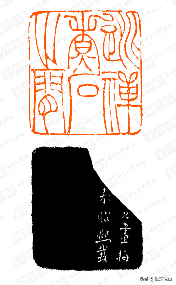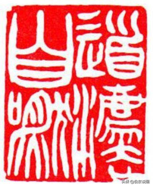 吴让之对邓石如“印从书出”的观念继承,并不是简单的重复,其出新处,正如韩天衡先生所评价的那样:首先表现在配篆上,他深获展蹙穿插的妙理,蹙以求其结密,展以求其婀娜,穿插求其呼应,使印多字,顾盼生姿,浑然天成,此法也影响了篆刻大家吴昌硕。