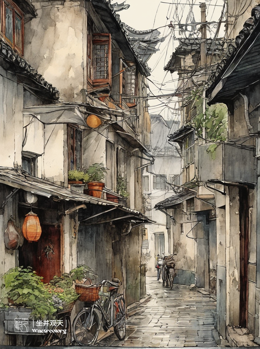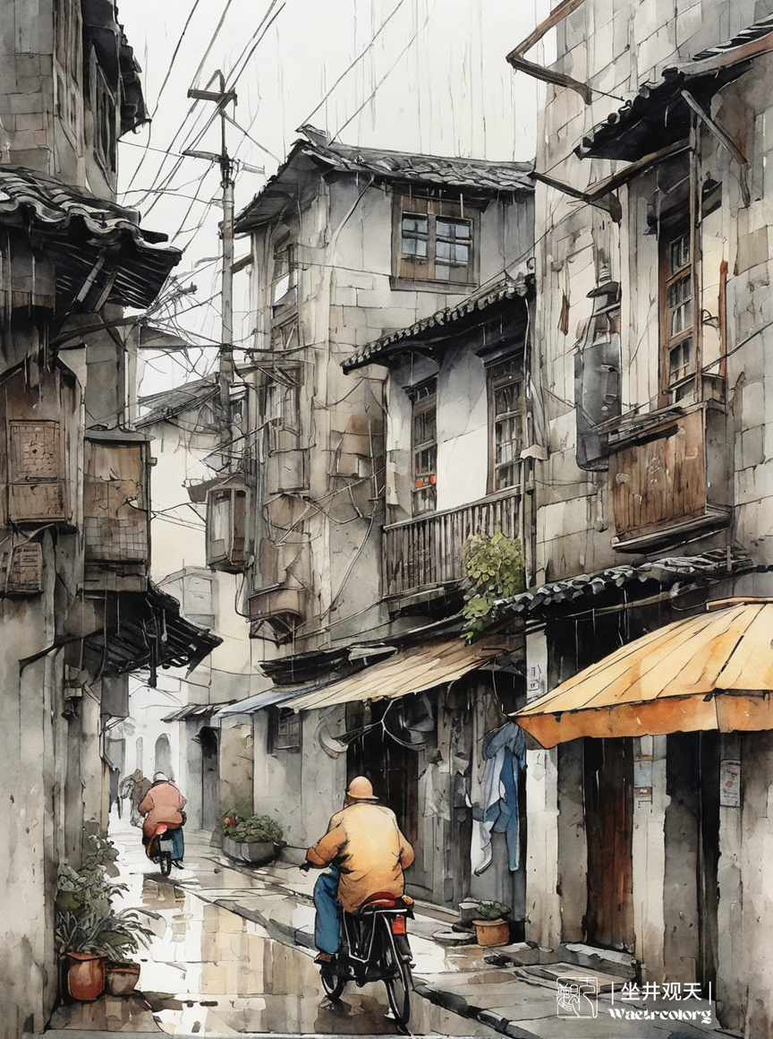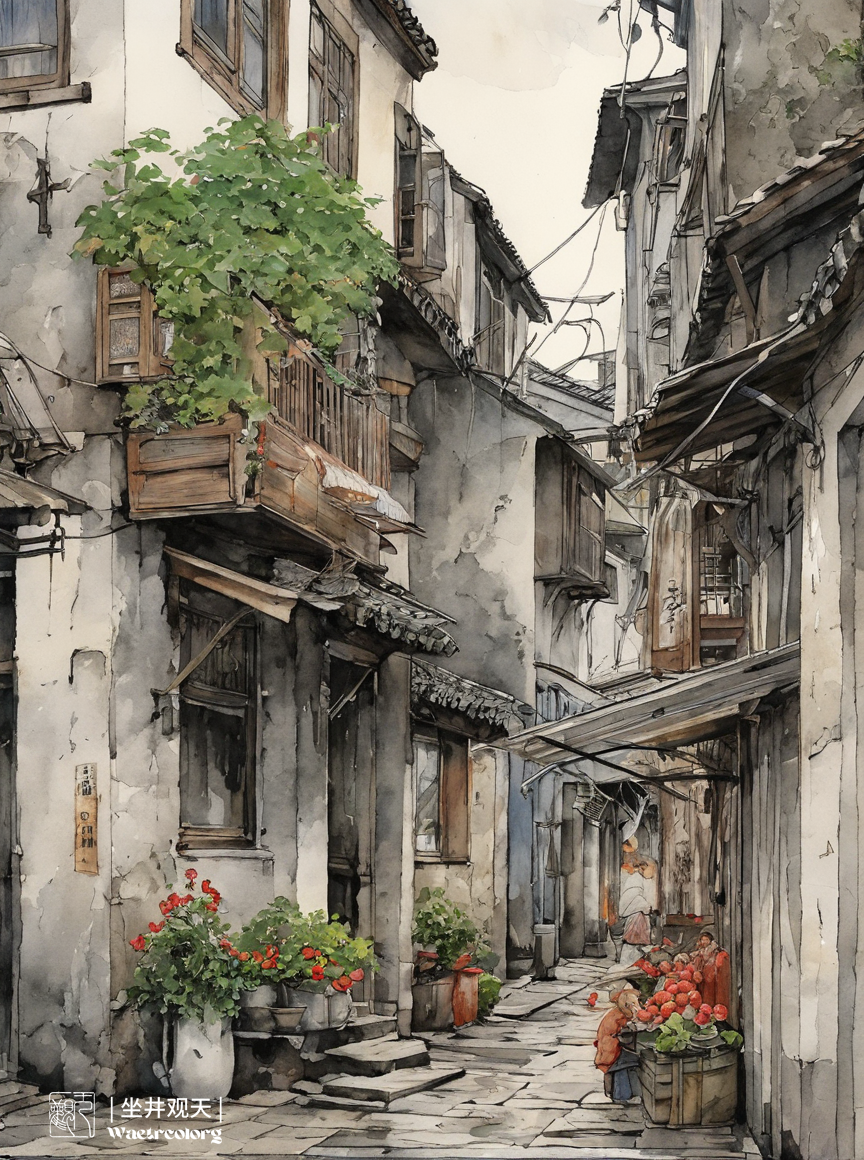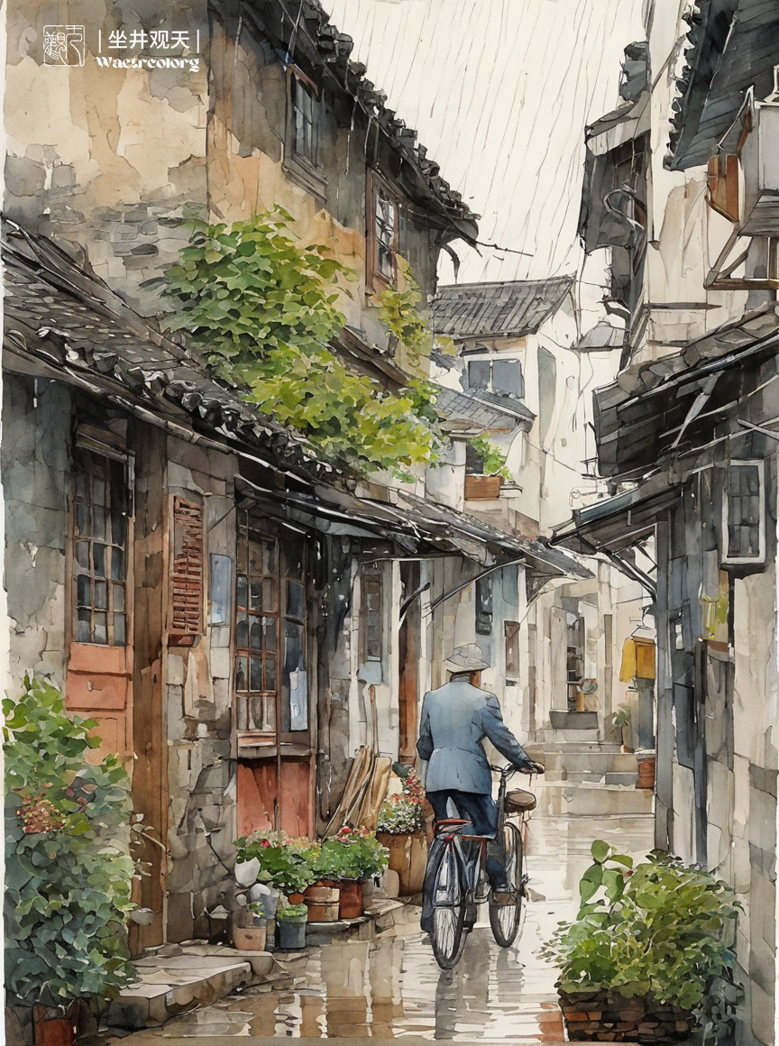 水彩风格AI绘画《雨中的姑苏小巷》分享。采用stablrdiffusion软件生成。操作参数:Steps:33,Sampler:DPM++2MKarras,CFGscale:7,Seed:1841503748,Size:864x1160,Modelhash:6e0ba74ac1,Model:sdvn7Nijistylexl_v1,Lorahashes:"Suzhoualleyarchitecture-000003:e02f8a7cc0d0",Refiner:sd_xl_refiner_1.0_0.9vae[8d0ce6c016],Refinerswitchat:0.9,Version:。提示词:(Watercolorartstyle:0.8),highlydetailedlinesreminiscentofKahnGriffiths,VadimKasim'stextures,CarlLarsson'scomposition,Suzhoualleywaystreets,bicycles,crowds,heavyrain,objects,featuringPASCALBlanche-stylesurrealistfigures,soft,elegant,Dramaticlighting,grayscale,expressivecameraangles,mattefinishes,,lora:Suzhoualleyarchitecture-000003:0.6,sketch,