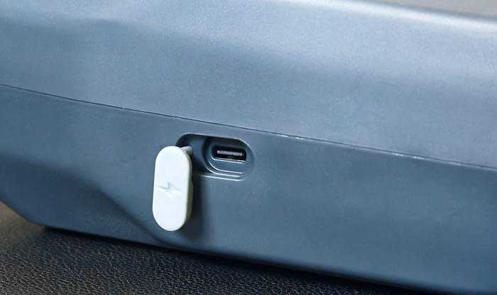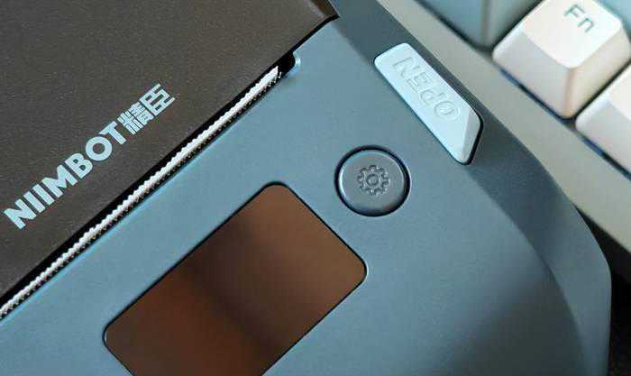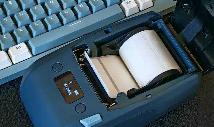 液晶显示屏两侧分别有一颗按键,左侧为电源键,长按即可开关机;右侧为走纸键,按一次即可打印一张与之前相同的标签,非常方便。走纸键的右侧是开盖按键,按下后可以打开上方的纸仓。机身左侧为Type-C充电口,并设计有防尘塞。