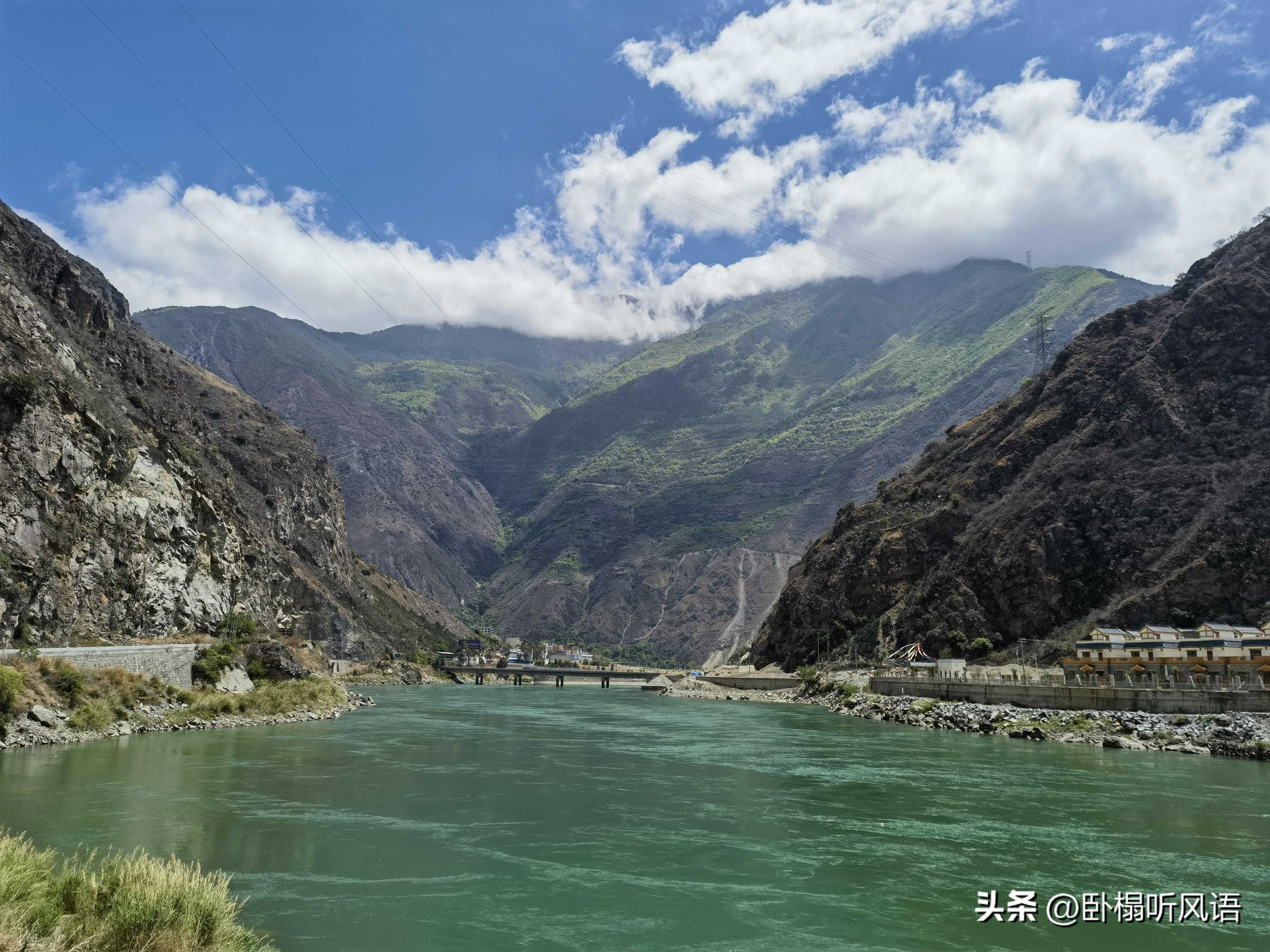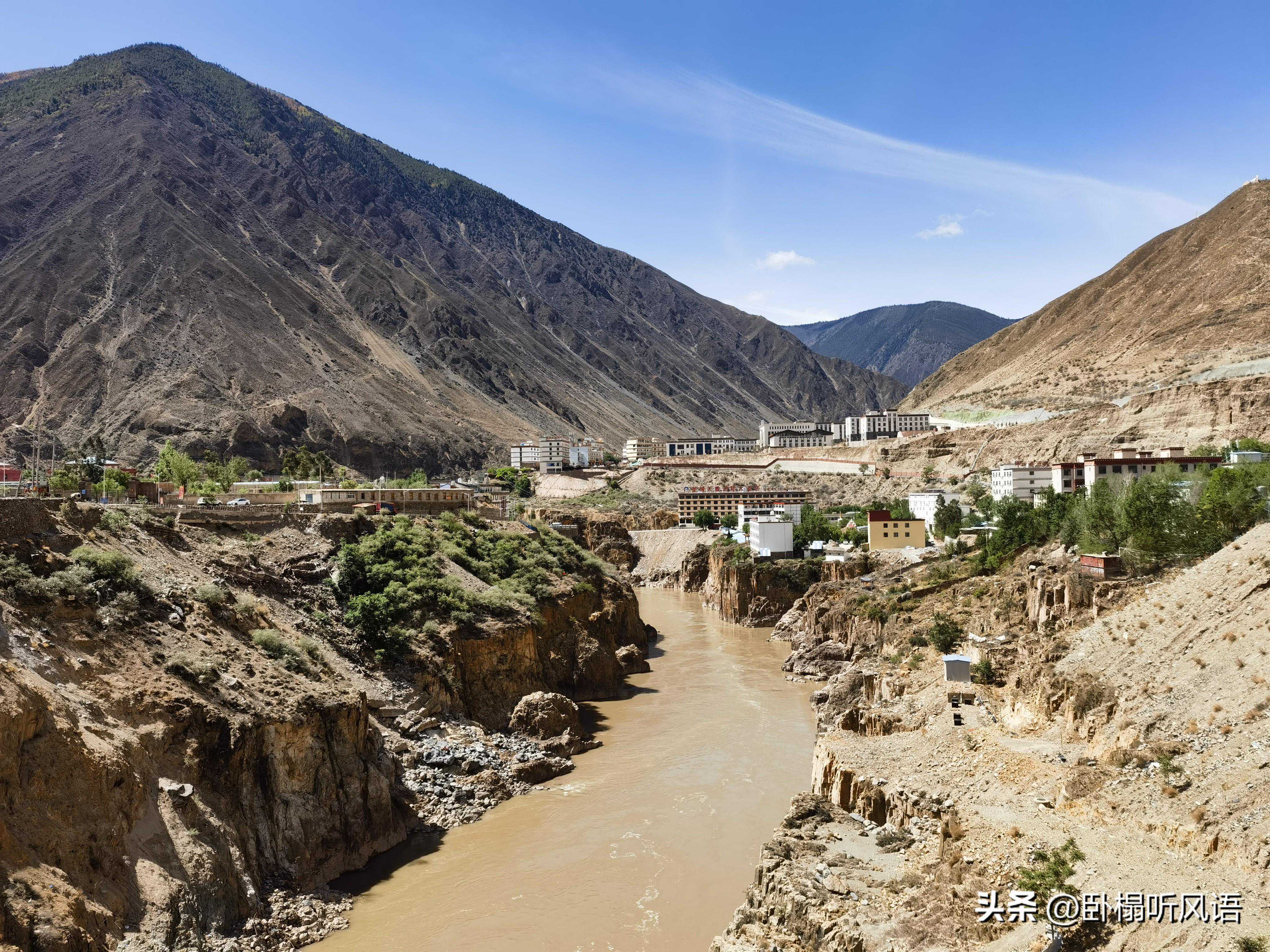 走G215沿金沙江溯游而上,金沙江的水跟黄河一样浑浊。开始大约10km下坡,再骑23km平路,总计在33km后到达金沙江大桥,正式进入西藏界!