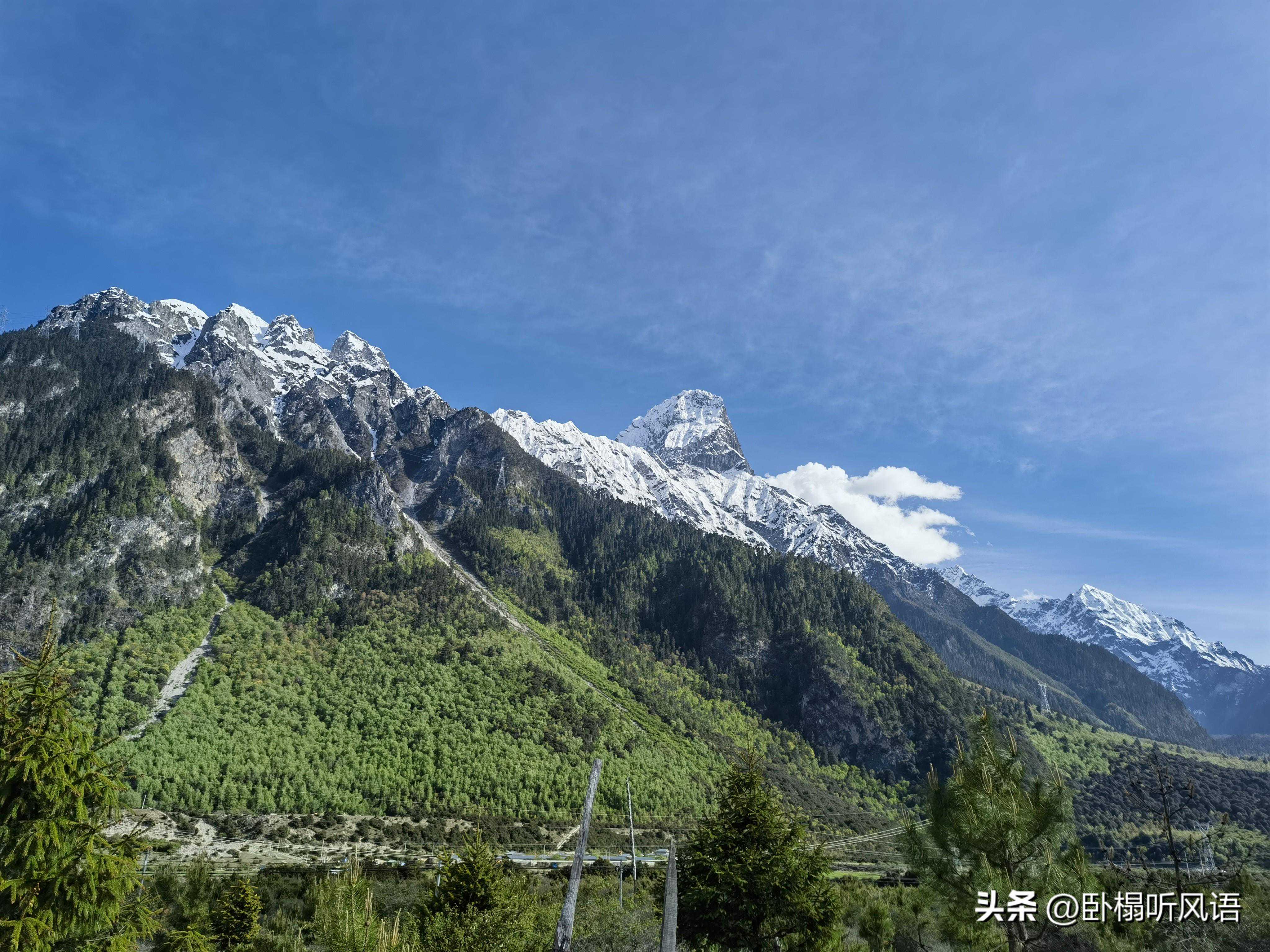 国道两边的山峰非常高,“天姥连天向天横,势拔五岳掩赤城”!青山郁郁葱葱,难以再看到雪山,直到走出大峡谷之后,才能看到连绵的雪山。