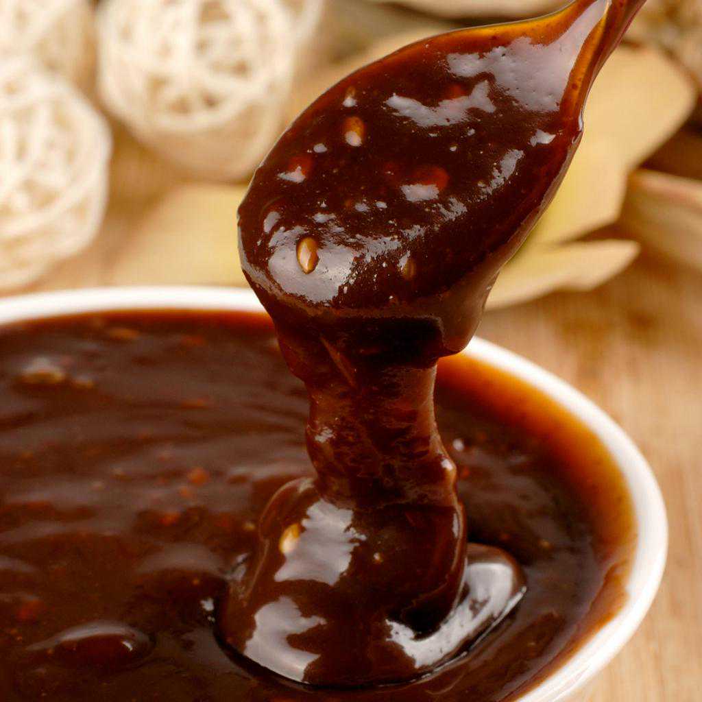 甜面酱,也称甜酱,是以面粉为主要原料,经制曲和保温发酵制成的一种汉族传统酱状调味品。其味甜中带咸,同时有酱香和酯香,适用于烹饪酱爆和酱烧菜,如“酱爆肉丁”等,还可蘸食大葱、黄瓜、烤鸭等菜品。