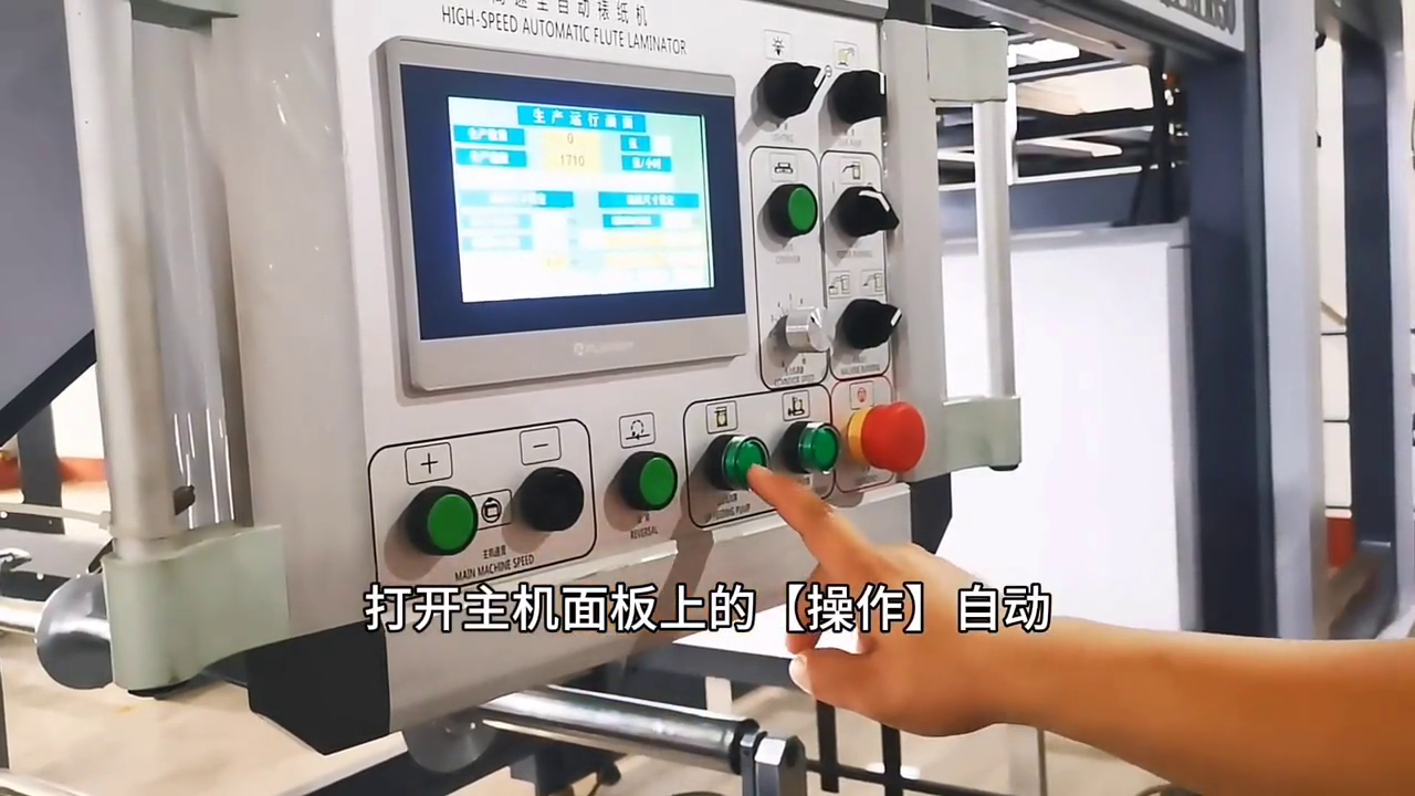 ·打开主机面板上的操作自动启动飞达走纸,当面纸与底纸运行到压合辊出去部分时按下急停开关,查看面纸与底纸前沿差距。