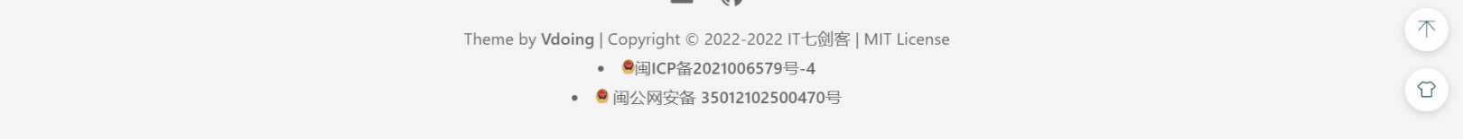 footer:{//页脚信息createYear:2022,//博客创建年份//博客版权信息,支持a标签copyrightInfo:'IT七剑客|MITLicenseliimgsrc=""style="zoom:30%;"ahref=""target="_blank"闽ICP备2021006579号-4/a/liliimgsrc=""style="zoom:30%;"atarget="_blank"rel="noopener"href=""闽公网安备35012102500470号/a/li'},