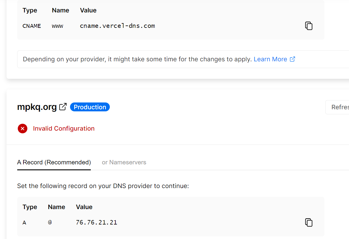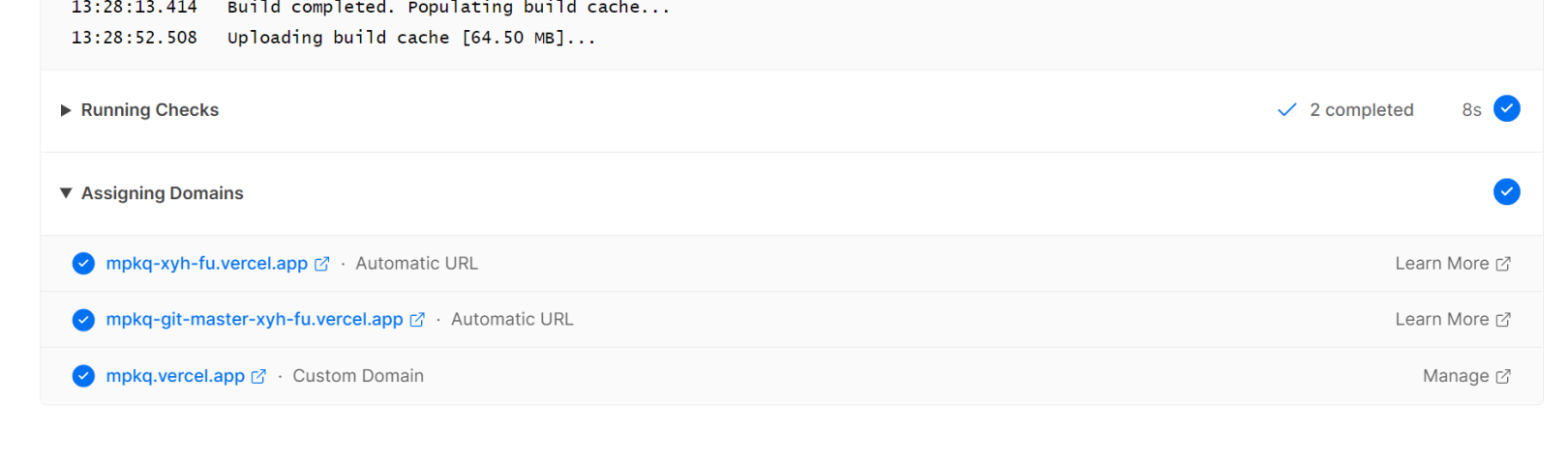 这里应该是最近vercel的默认域名被禁的缘故,之类的域名国内均不能访问,所以在部署环境id时需要添加自己的域名进行部署,类似。
