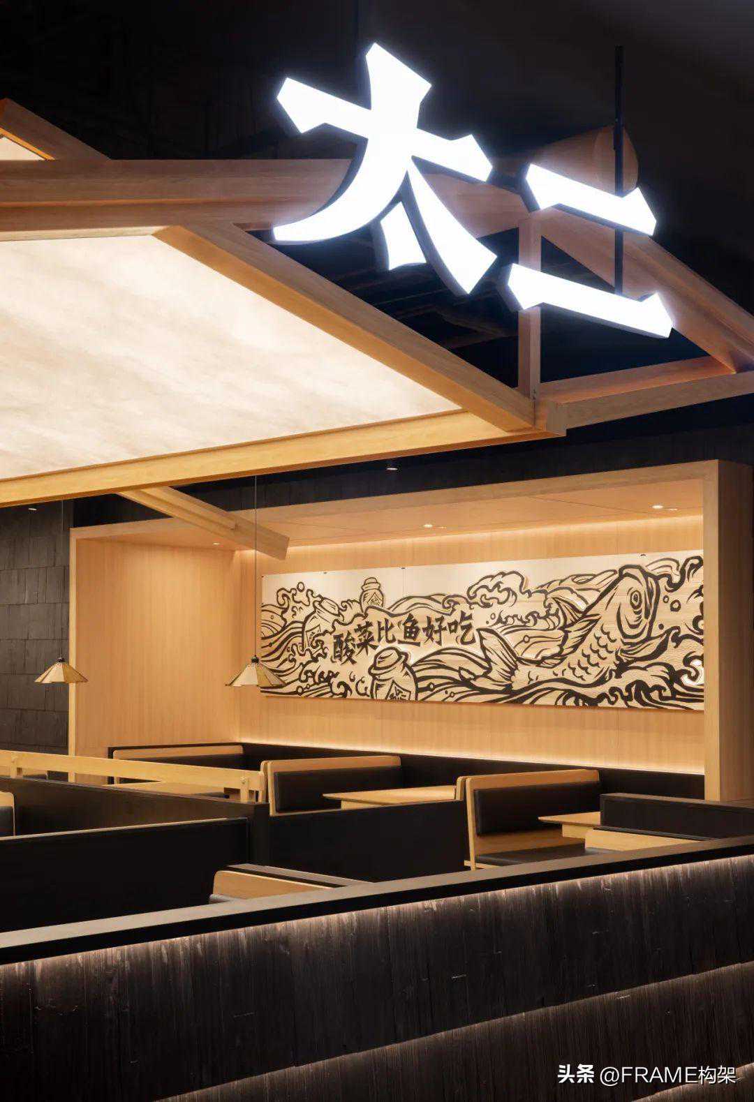 我们融合了中国传统建筑和木结构的组成形式,结合各种具有手工感纹理的材料表现,形成「坊」,以手作的雕琢与研磨精神,展现太二的专注与精致,表达出太二鱼坊下专注做鱼的场景。