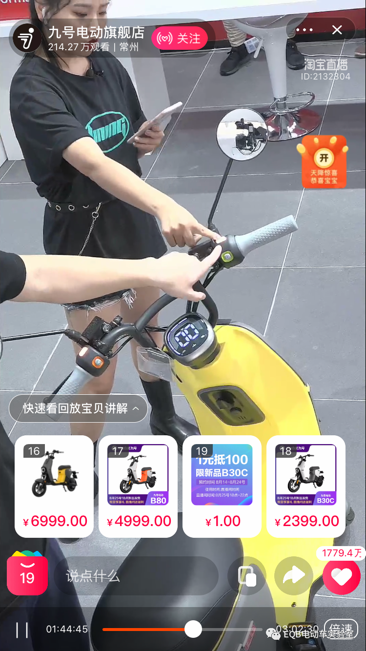 8月25日晚,九号电动在敦煌、常州两地同时进行了新品直播发布会,发布了其最新电动新品B系列电动自行车。其中B30C售价仅2599元,成为了目前九号旗下最便宜的电动车。