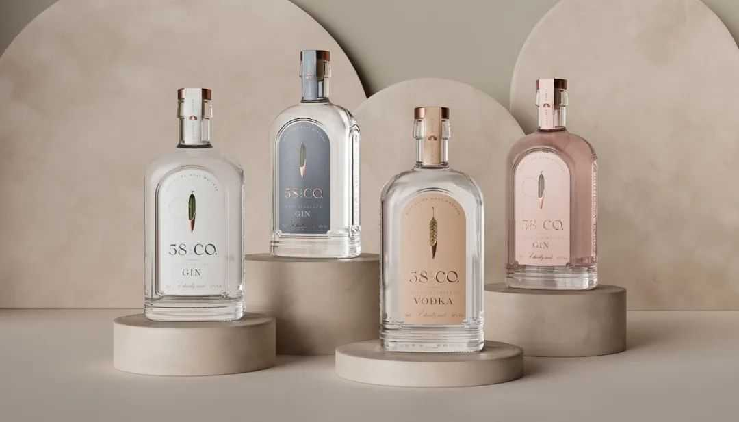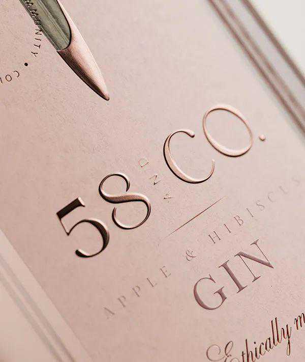 58andCo.是一个杜松子酒品牌,追求高质量的品质和服务,产品包装围绕“提炼最重要的东西”这一品牌理念,以一个浸铜的杜松叶为主题元素,反映了产品的高级感,整体视觉简约优雅,富有现代感。
