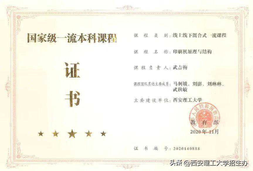 一流教育教学成果:本专业办学成绩显著,获得陕西省教学成果奖一等奖1项、第一届高等学校印刷工程专业青年教师讲课比赛一等奖1项、陕西省首届高校课堂教学创新大赛二等奖1项、陕西省首届高校课堂教学创新大赛优秀奖1项。