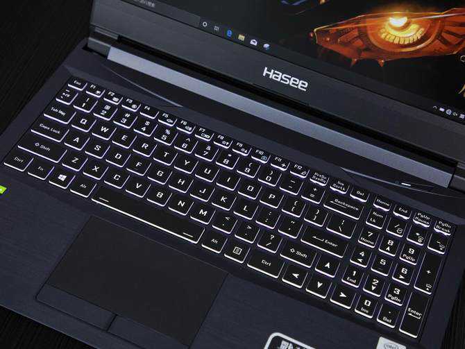 在按键手感方面,键盘键程设置合理,敲击舒适,应对日常打字非常不错,同时没有定制按键的设计,让这块键盘的一体性更强,看上去更协调一些,我个人还是比较喜欢这样的设计,不喜欢那种“WSAD”特别设计的按键,毕竟买这种级别的游戏本通常都会自己外接键盘进行游戏,所以键盘上的按键其实更多的是用来日常打字的,神舟的这款键盘在打字的时候较为舒适,能够更好的适应一些日常的办公场景,所以我们可以悄悄的发现,目前市面的上游戏本都开始向着这种跨界发展,照顾更多的非重度游戏用户。