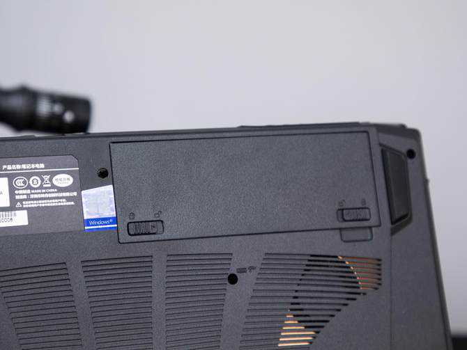 D面,这款游戏本采用了可拆卸电池的设计,同时底部的散热孔位面积超大,几乎整个D面都进行了开孔,能够及时的将热量排除,而大面积的防滑脚垫,配合机身重量,在桌面上的稳固性很好。