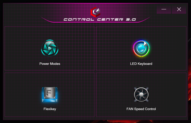 首先我们先来介绍一下这款游戏本内置的控制中心,在控制中心里面我们可以直接控制电源模式、键盘背光、宏按键和风扇转速。