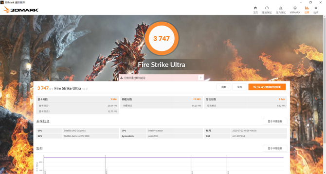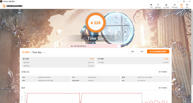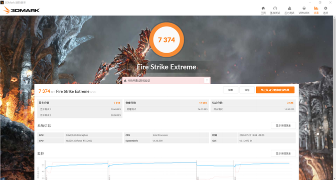 在3DMARK测试环节中,这款游戏本的FireStrike成绩为14372,FireStrikeExtreme成绩为7374,FireStrikeUltra成绩为3747,TimeSpy成绩为6124,这样的成绩全面领先上代酷睿i7-9750H+RTX2060的组合,能够畅玩目前市面上的绝大部分游戏。