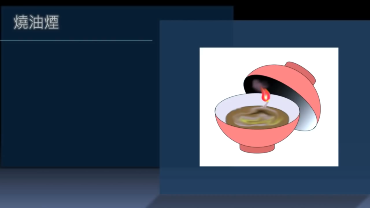 這是日本燒油煙的方式,和中國差不多,下面油盅點火,上面合一個蓋子以收煙。燒油煙的方式比松煙簡單,清代油煙非常流行。