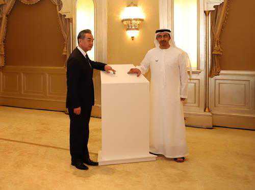 王毅说:“今天我们在这里见证中国疫苗原液灌装项目的启动,标志着中阿两国抗疫合作进入到了一个新阶段。我们期待这一合作能顺利、有效展开,以阿联酋为平台,使中国疫苗惠及更多地区人民,为构建人类卫生健康共同体作出新的贡献。”