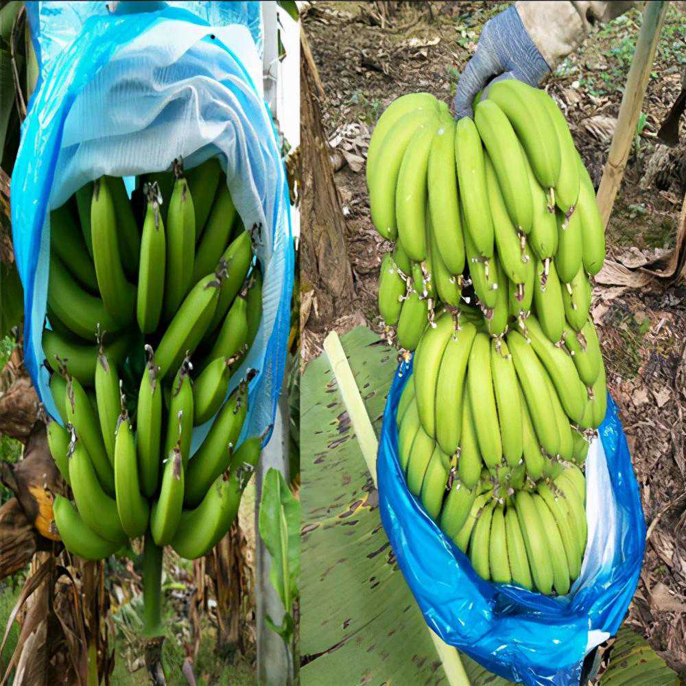 3.改善了香蕉的生长环境,夏凉冬暖。夏季套袋能够为香蕉遮挡阳光,防止紫外线直接照射果实,避免香蕉因灼伤而造成黑斑、黑皮、焦皮等现象,影响香蕉的品相。冬季套袋可以提高袋内温度,起到保暖作用,减少寒风对果实吹打,防止香蕉被冻伤或者掉落,另外收获期也可以提早15天左右。