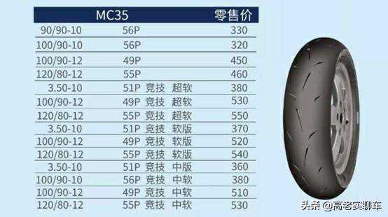 踏板车是非常好的赛道入门车型,很多车手都是从踏板车开始自己的职业生涯,包括我们平时去跑山,在下山的路段谁第一个到山下还真不一定,今天Mitas也给踏板车主们带来两款跑山利器。分别是MC34和MC35,这两款轮胎都提供了赛道版本,并且为大家准备不同的软硬度供大家选择,专业为赛道而生的家伙注定与众不同。拿MC35为例提供了竞技超软、竞技软和竞技中软三种级别,这时候怎么去选择呢,如果是直线加速赛、圈速挑战赛这两种情况大家可以去选择竞技术超软,相应的抓地力是非常好,但是耐用性就会差很多。如果是冲刺赛在气温低的时候选择软,气温正常可以选择中软,当然这个也看车辆的调教和赛手的个人喜好来最终确定。耐力赛选择中软就对了。