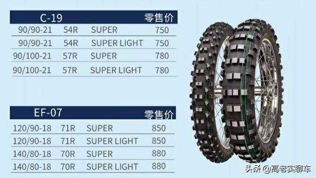最后介绍的C19(前胎)和EF07(后胎)并不是什么高级产品而是我们日常并不会用到的林道胎,是不能正常在路面行驶的车辆,比如HONDACRF、YAMAHAYZF、KAWASAKIKXF、SUZUKIRMX、KTMEXC等车型上才会用到。只有部分狂热的越野发烧友有钱有时间才会购买这样的车型,这些车型不能上牌照,不可以在公路上行驶,需要用拖车拉到专业的场地或者纯非铺装路面去玩,只要这些轮胎在公路行驶一次,所产生的损耗会让你痛彻心扉。