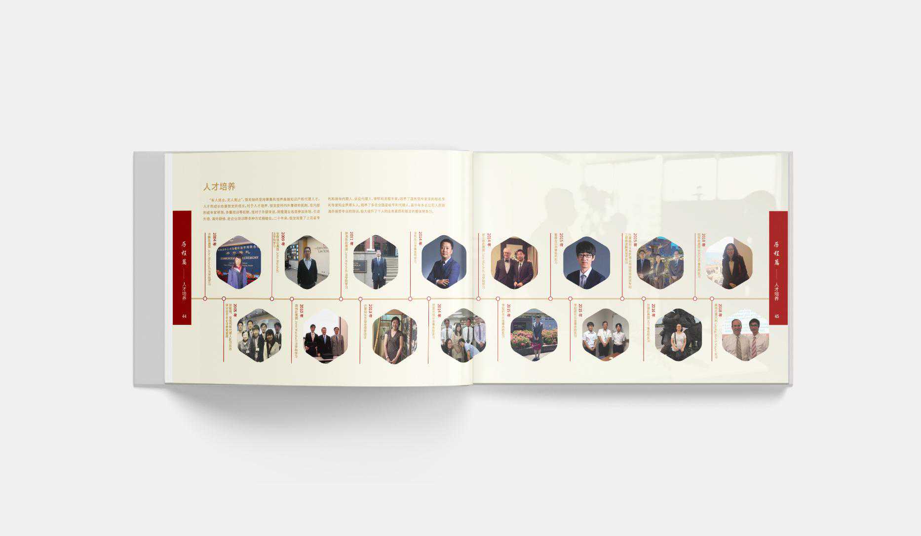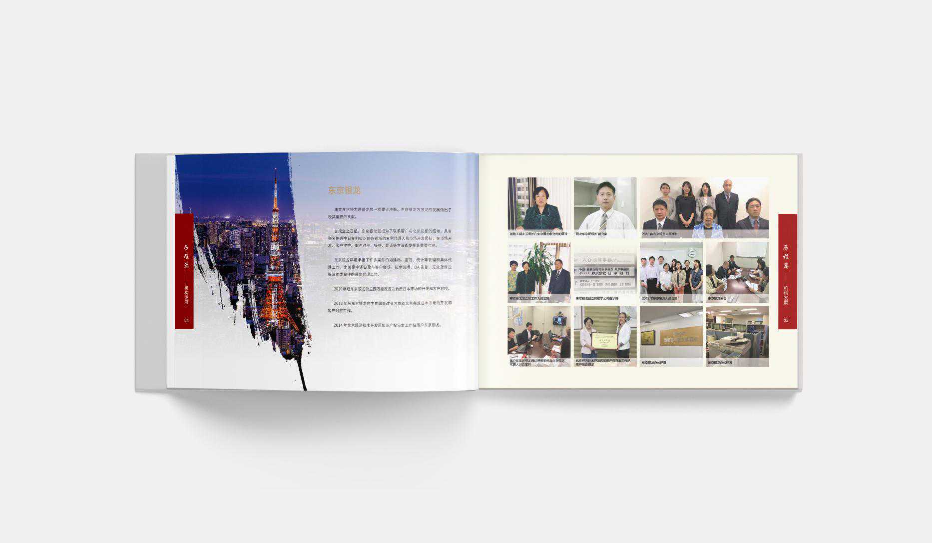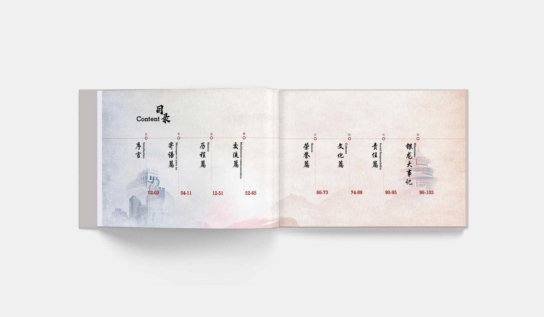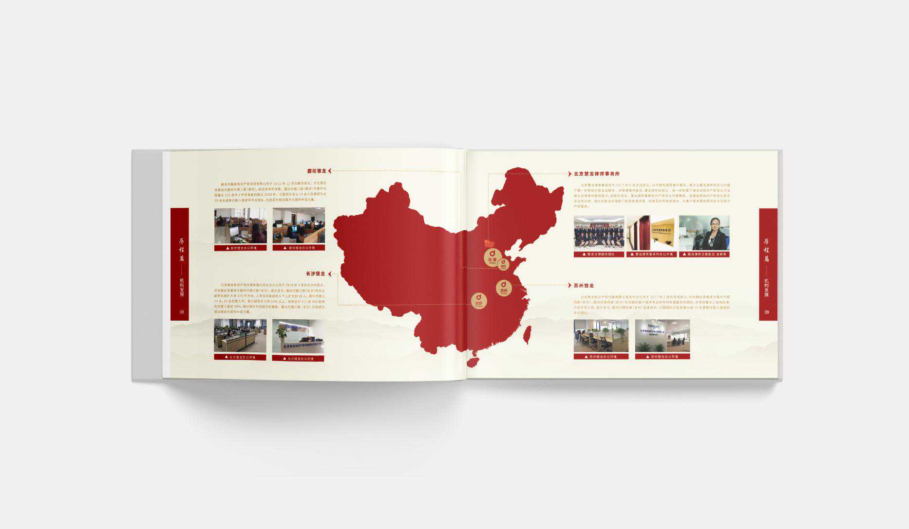 卓与设计团队前期与银龙核心领导对画册设计方向进行深入访谈,作为中国首批涉外专利代理机构,在20年的发展历程中北京银龙既代表了中国业内的最高水平的对外展示同时又见证了伟大祖国在经济以及科研当中突飞猛进的成就。所以卓与策略以及设计团队主张以“中国”和“发展”为画册框架主题,选用“红色”作为整本画册的主色调,“金色”为辅助色调。彰显中国文化特色的同时又表达了对未来的畅想以及坚定的信念。画册的章节页同时采用中国的手书字体-醒目、大气,突显企业在20年中所积累的底蕴和自信。画册内文的版式设计运用现代的几何空间版式的风格,结合西方设计阅读习惯配以案例及图片即让受众赏心悦目,也突出企业在审美方面的造诣。便于更好的展现出北京银龙20周年的闪亮风采。