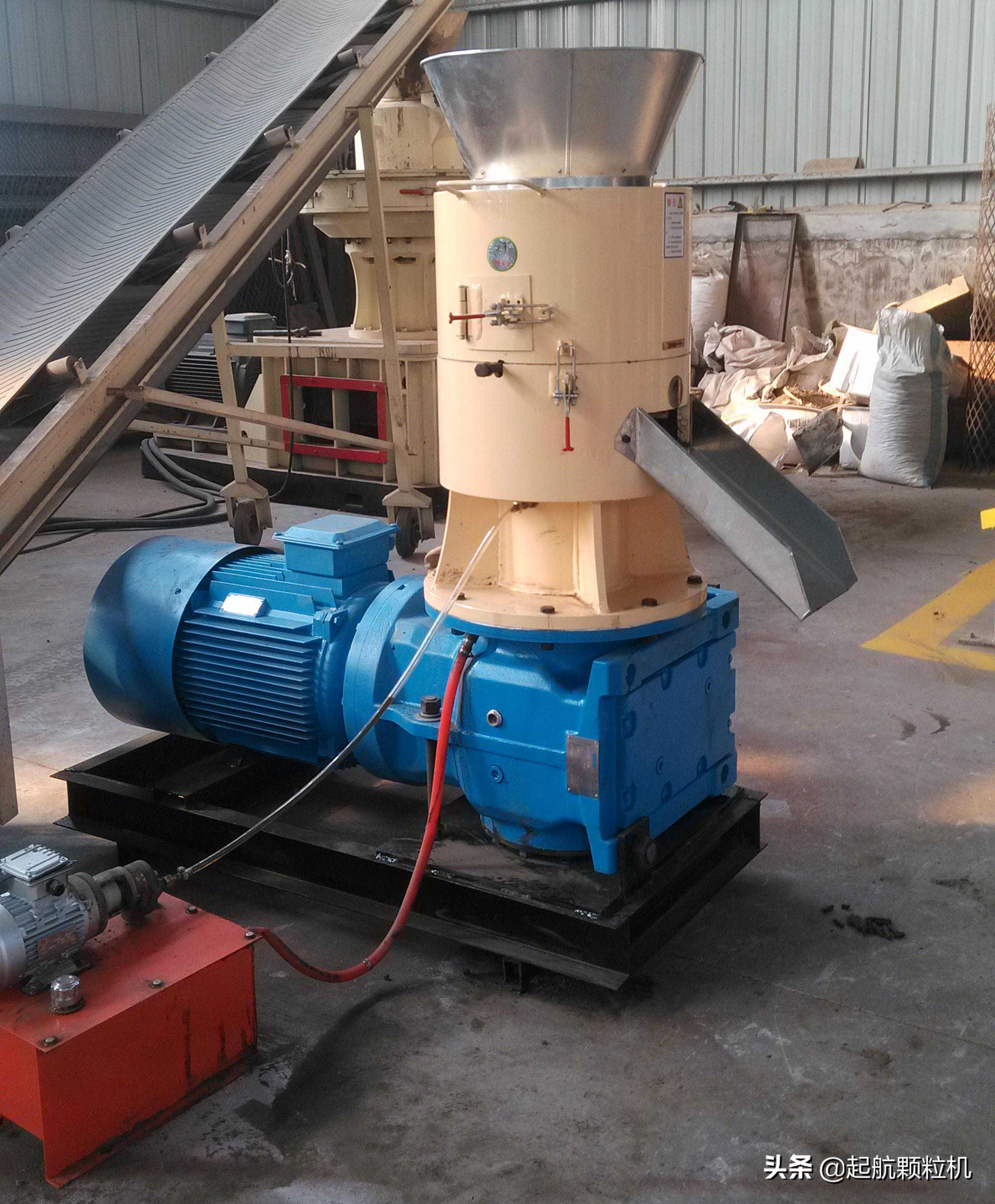 2、起航颗粒机采用挤压造粒,无需加水,原料水分含量10%-25%之间便可造粒,低耗能,产量高。