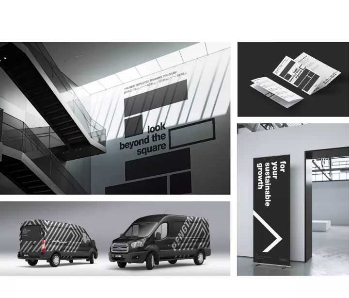 品牌LOGO设计主形象是一个三角形,VI应用图形延展“三角形”这一概念点线面无穷的延展变化,视觉设计呈现比较丰富,而且整体也比较统一。