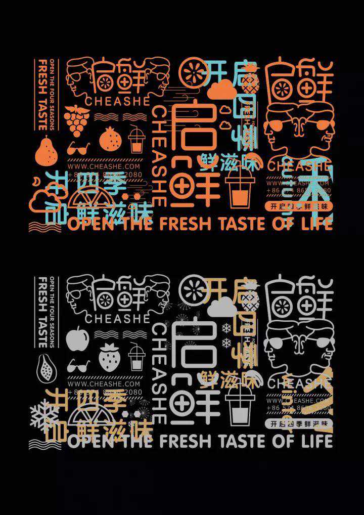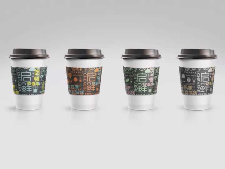 饮品杯子设计以文字设计为主不同的文字组合不同的色彩搭配既生动又能突出品牌,其他的VI应用也一直延续文字图形这一主识别形象。这样的设计很新颖很酷,适合主消费人群的视觉诉求。