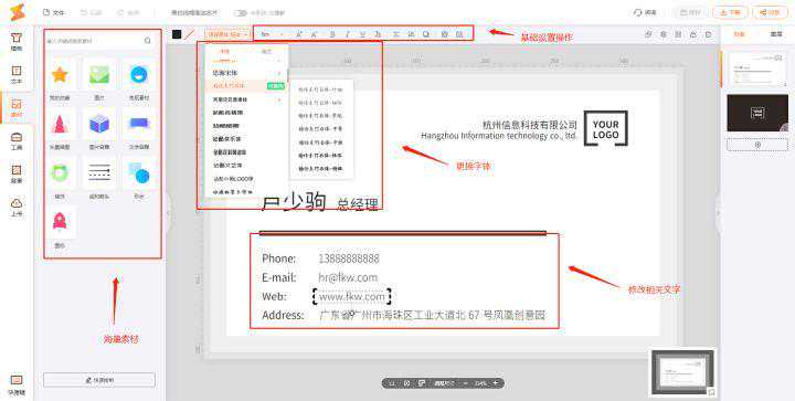 有设计感的字体更能提升名片的格调,因此在选用字体时尽量不要使用常规的字体,否则看起来就会特别没有水准,推荐几个凡科快图上名片模板上所用的字体