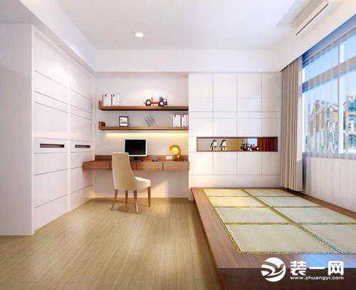 3、还有就是当床也不错。地台如果做得好,连床都可以省了!值得大家的选择。有的业主会在卧室床的位置打造一个地台,使地台与衣柜连接,再在边上设计一个书桌,时尚又实用,很不错的一个卧室设计。