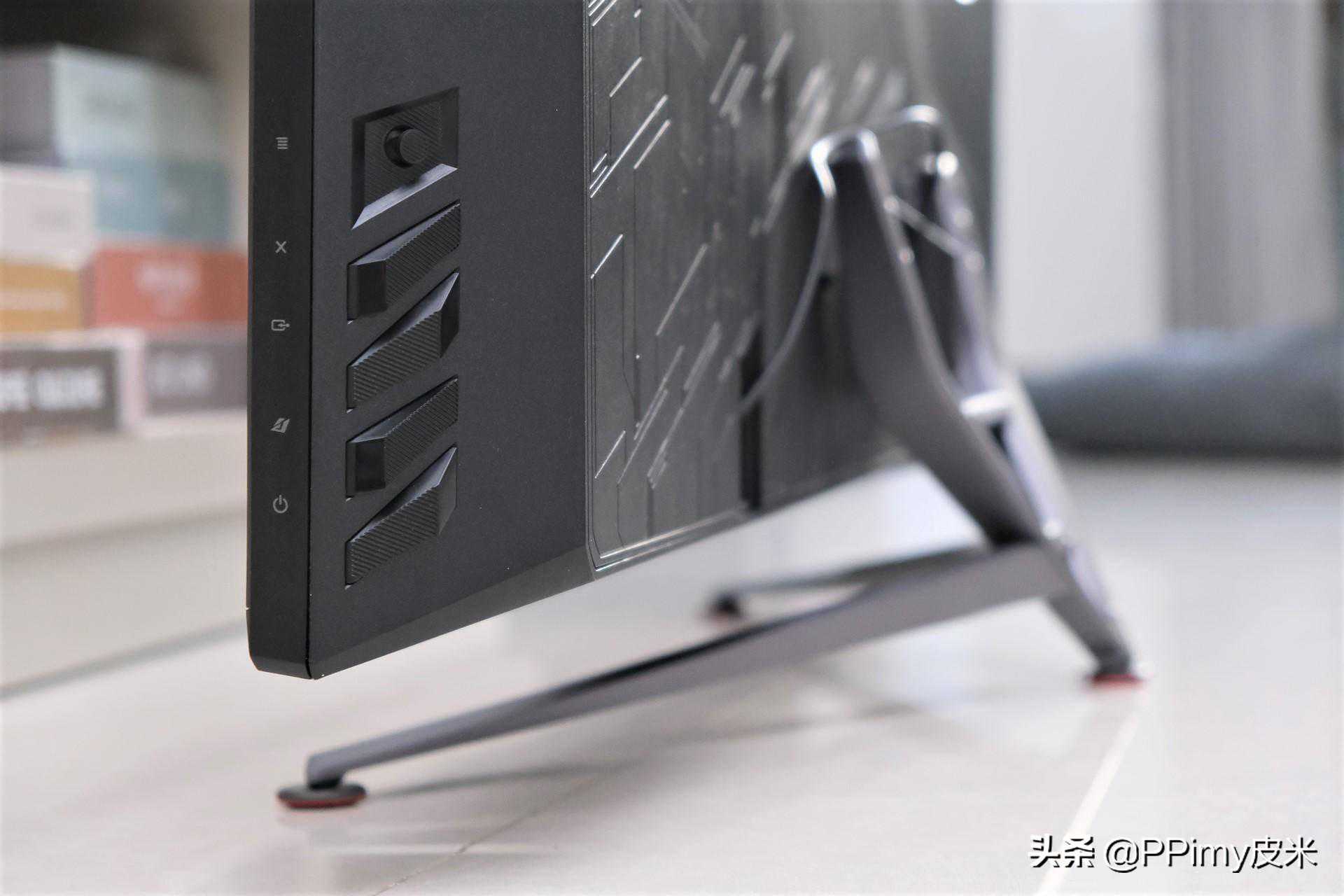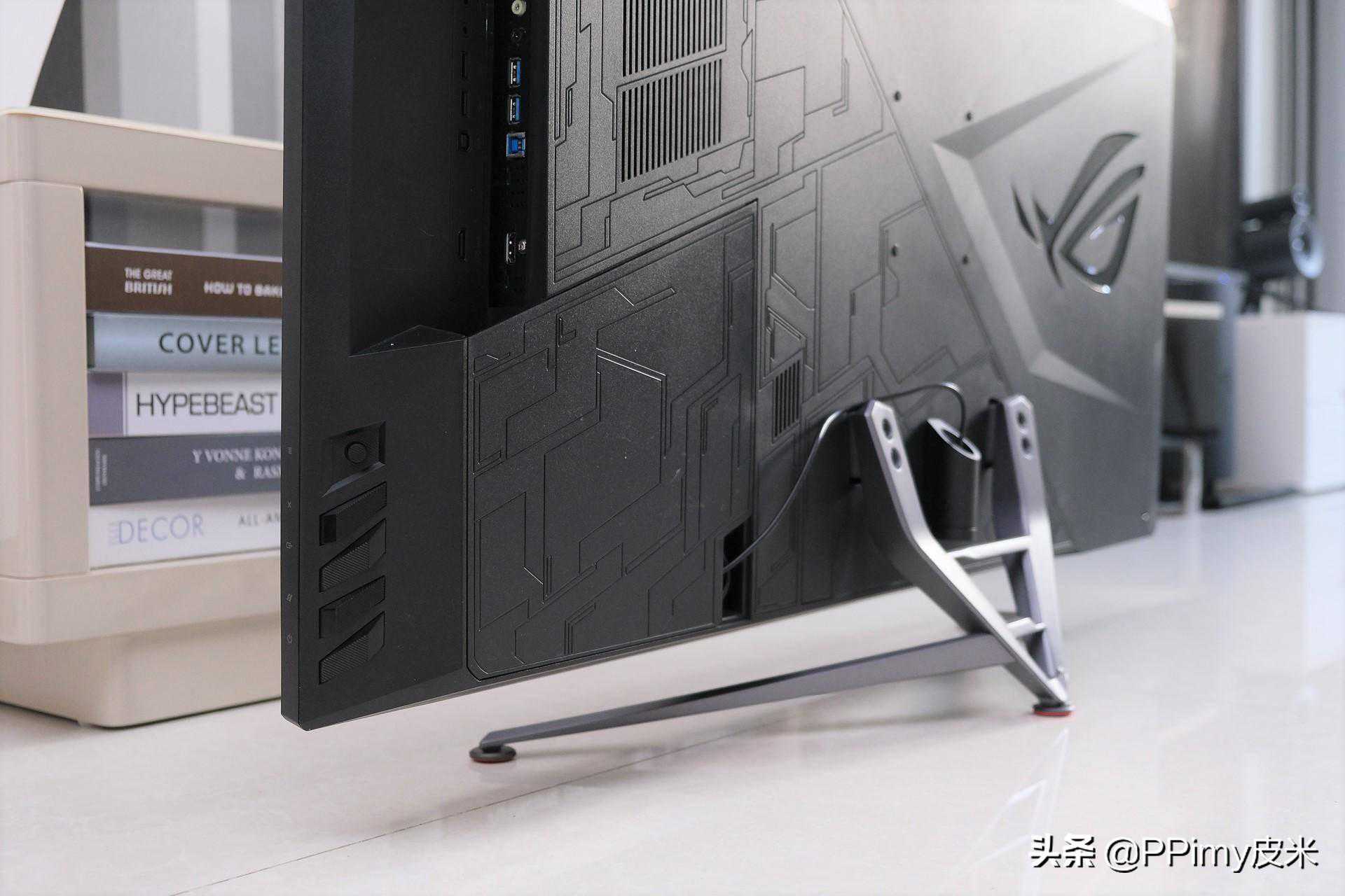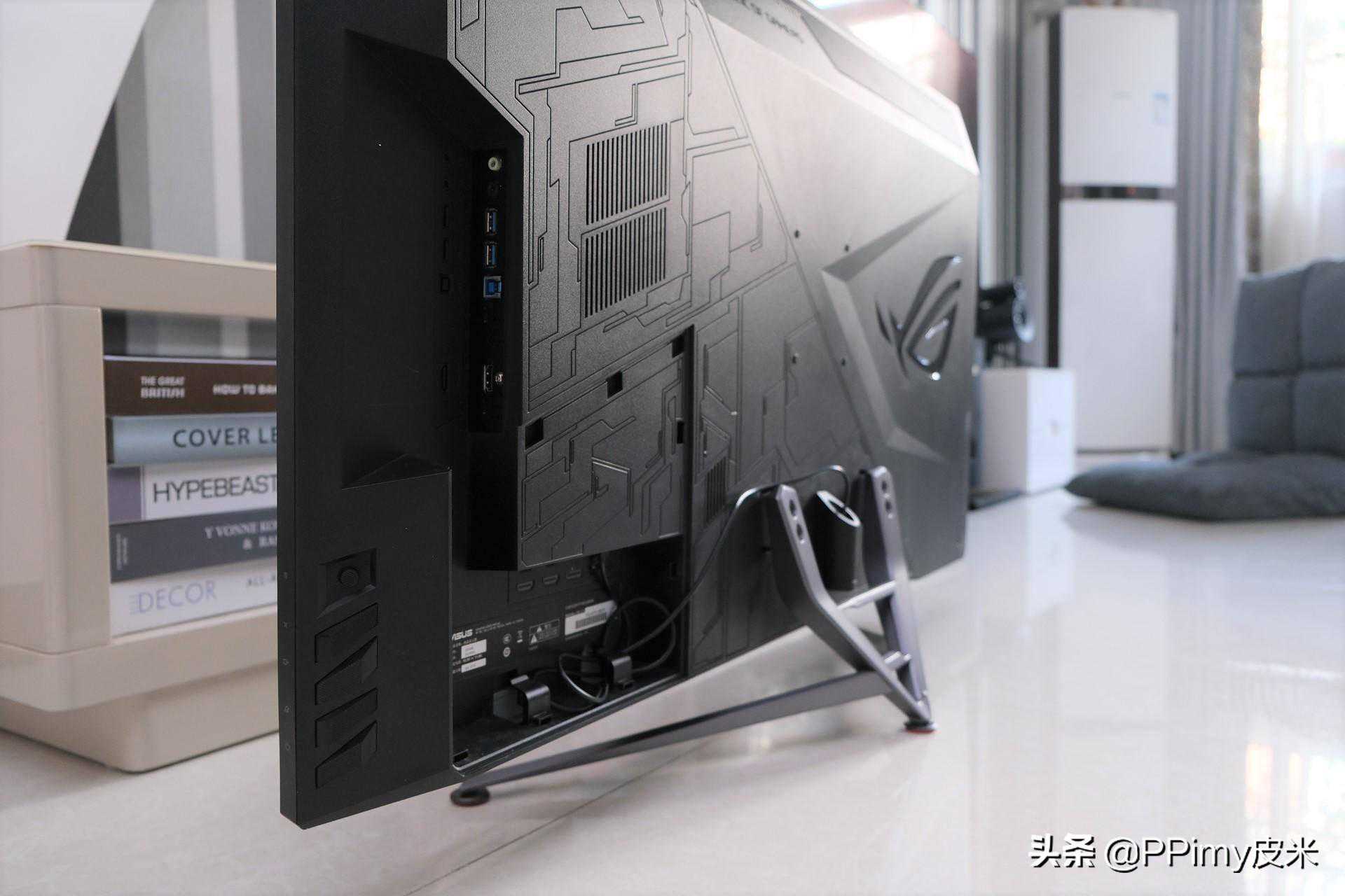 显示器还是厚度还是挺厚的,毕竟要实现4K120Hz,HDR600,450cd/m2这些凶猛的参数,显示器必须要预留充足的散热空间。相比起某些加装风扇的,我宁可选择厚点,嘿嘿~