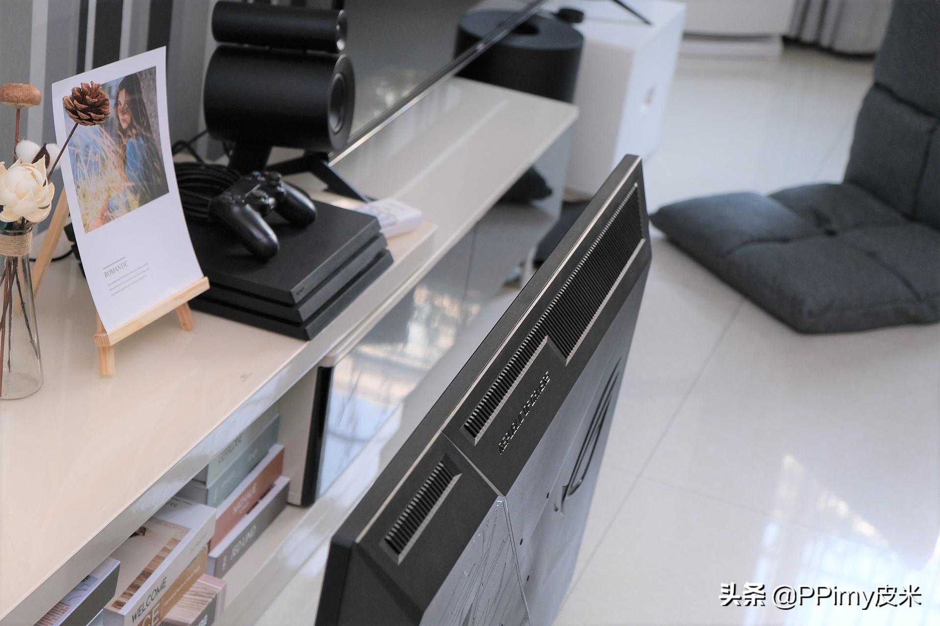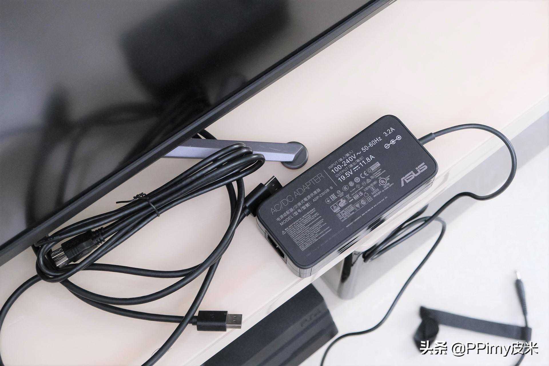 为了尽可能的减少热量,显示器选择采用了外置电源的供电方式,230w的峰值功率,顿时让旁边65寸的电视感觉自己只是个弟弟。