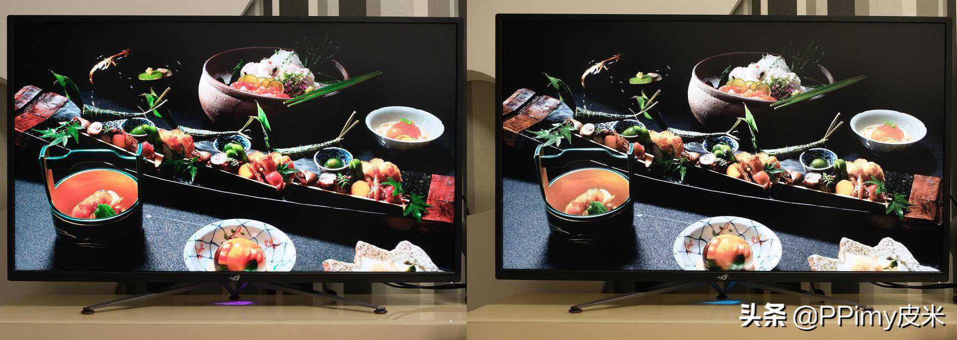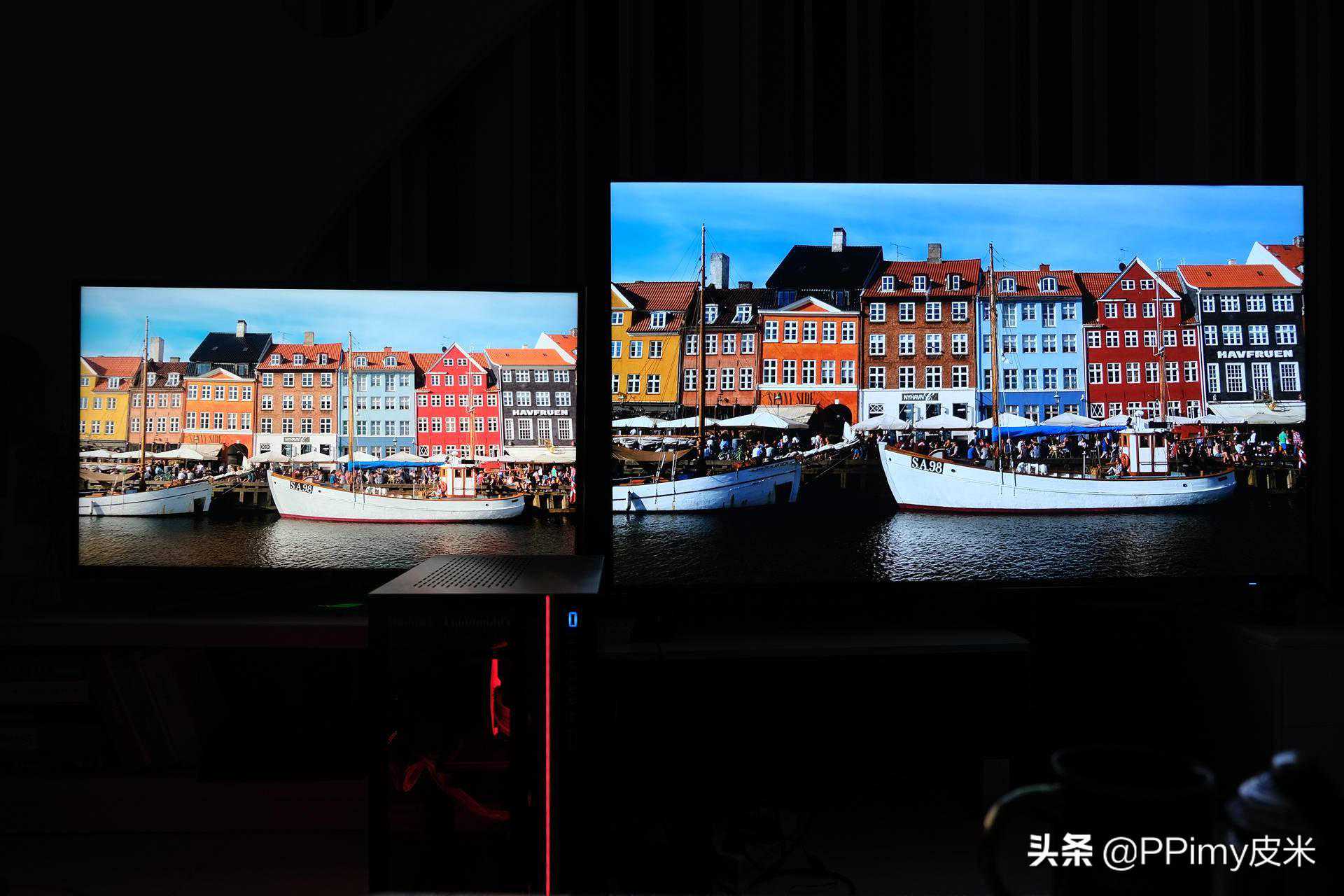 为了更好让大家感受HDR600的魅力,所以用旁边支持HDR10的电视做了个简单的对比,差距简直不要太明显↓