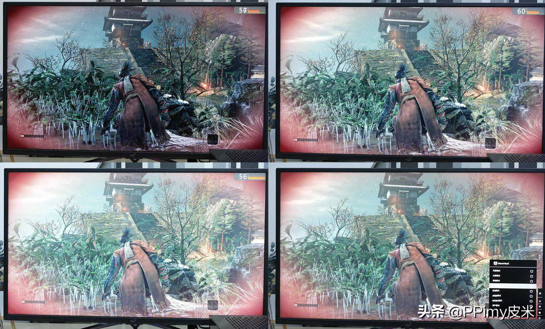华硕ROGXG438Q显示器针对RGBRTS(右下),FPS(左下),专业赛事(右上)都有针对性的模式优化(左上角是风景模式)。