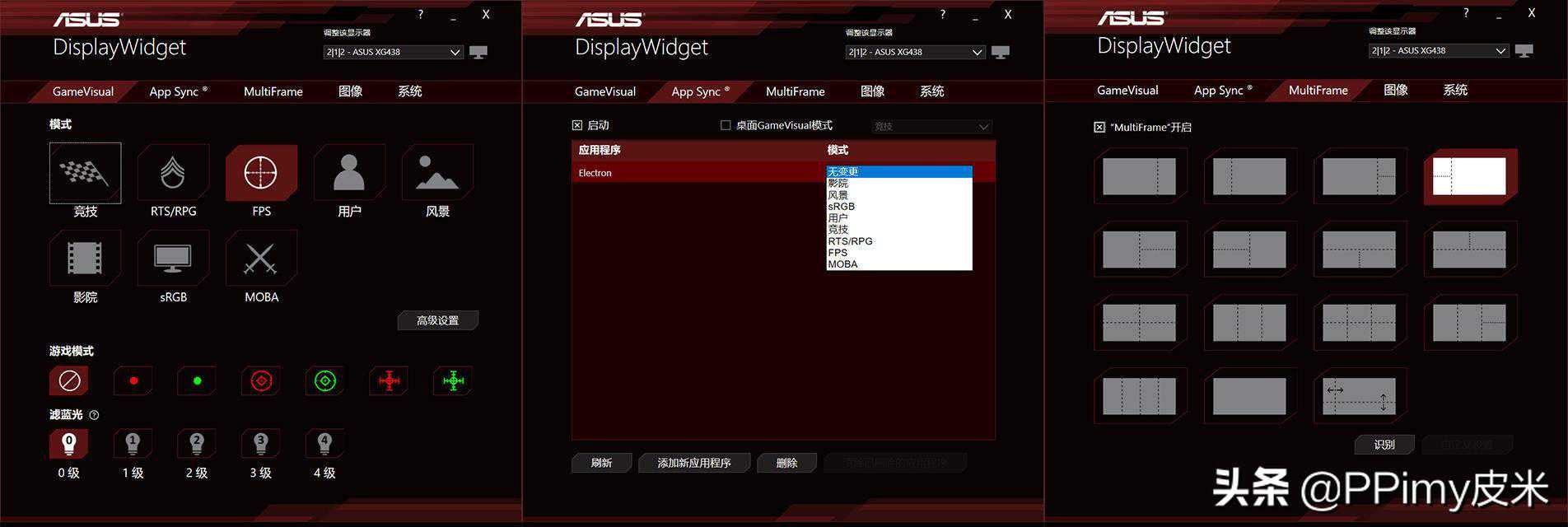 华硕专门还为其定制了一个DisplayWidget软件,可以让你通过HDMI或是DP直接控制显示器,还可以针对不同的游戏/软件,自动切换不同的显示模式,非常方便。